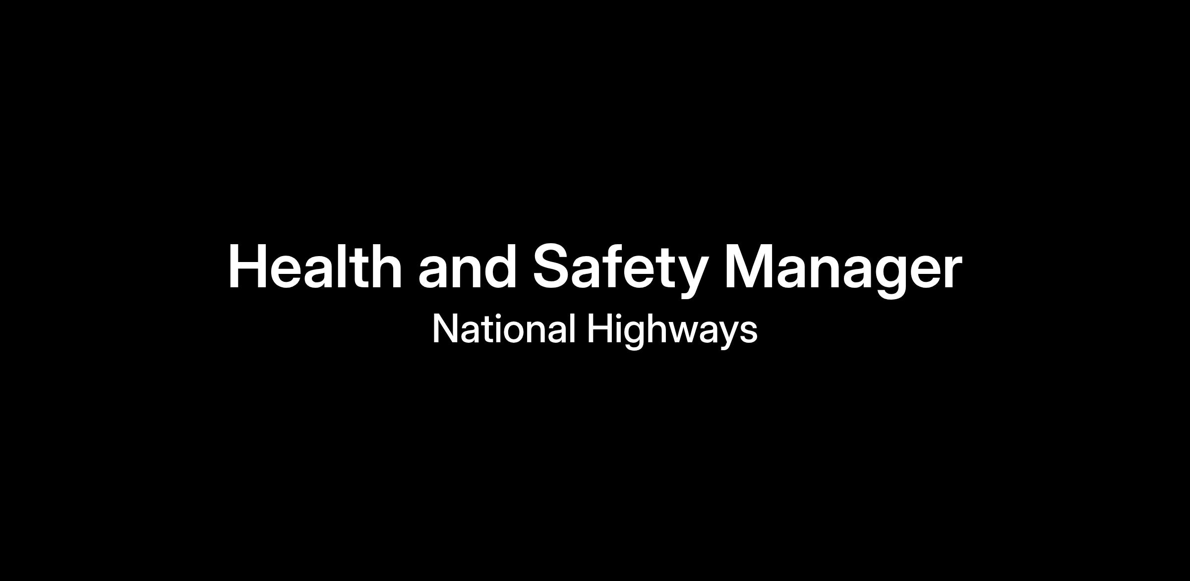 National Highways has an excellent opportunity for a Health and Safety Manager to join our team in Safety, Engineering and Standards (SES). National Highways is committed to ensuring that everyone who works on our road network and across our organisation, gets Home Safe and Well.